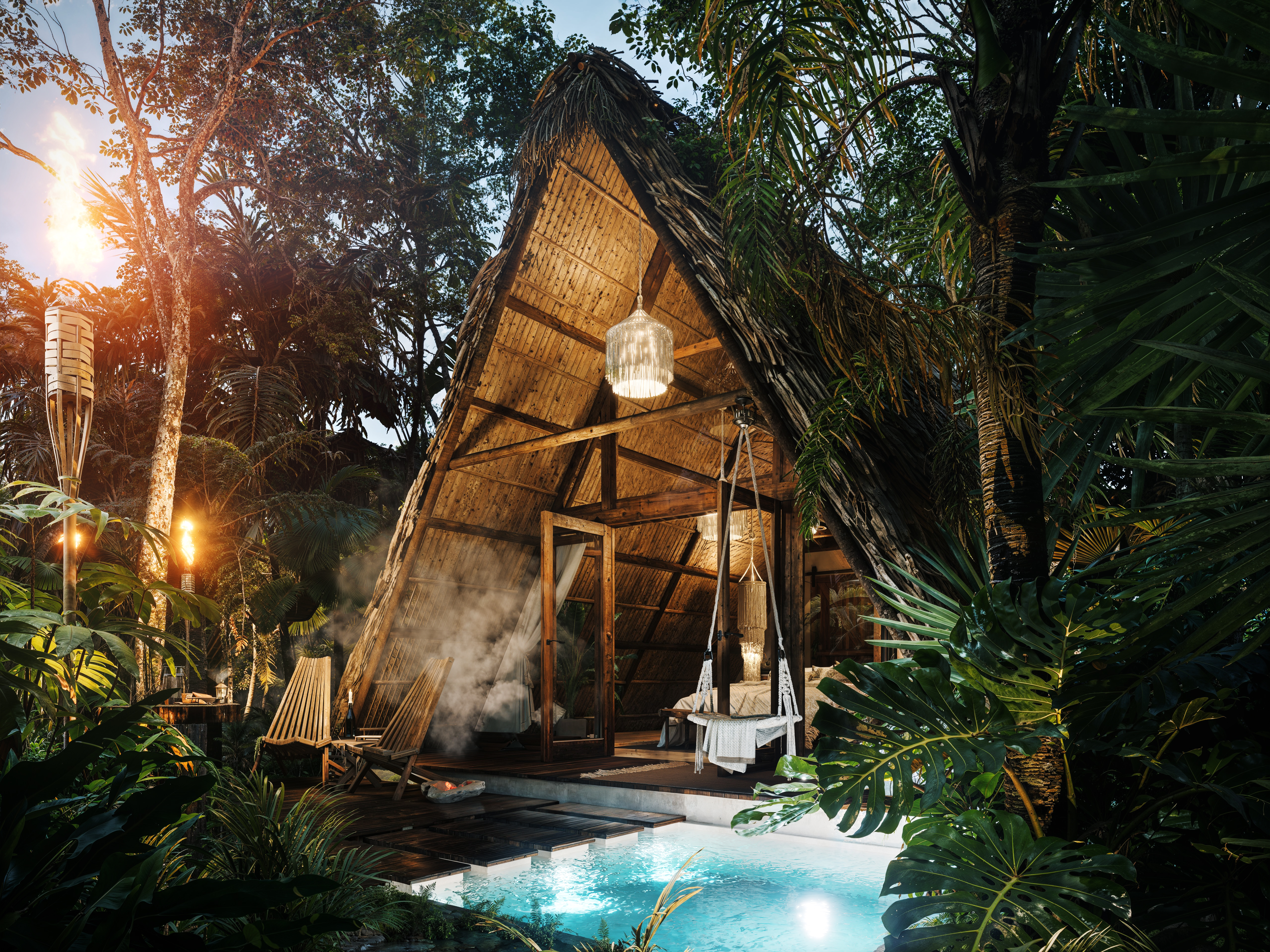 Imagine waking up every day in a space that envelops you in nature, feeling the plants as you walk by, hearing the water around you, feeling the warmth of the night and watching the Caribbean fire burn in a bonfire while you rest in your own space.